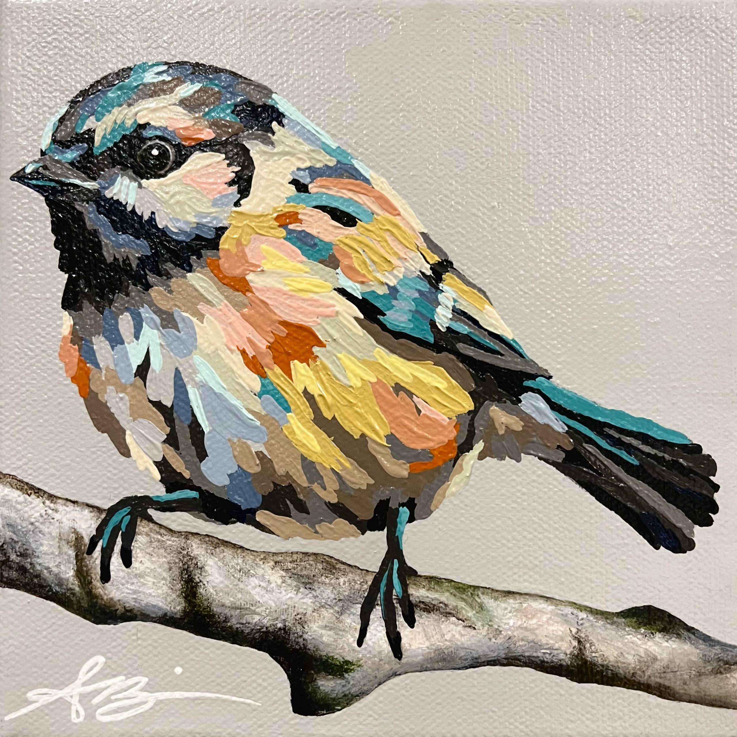 Acrylic paint on a 6”x6” 1.5” gallery-wrapped canvas with isolation coat and satin varnish. Comes with wire hanging hardware, ready for your wall.