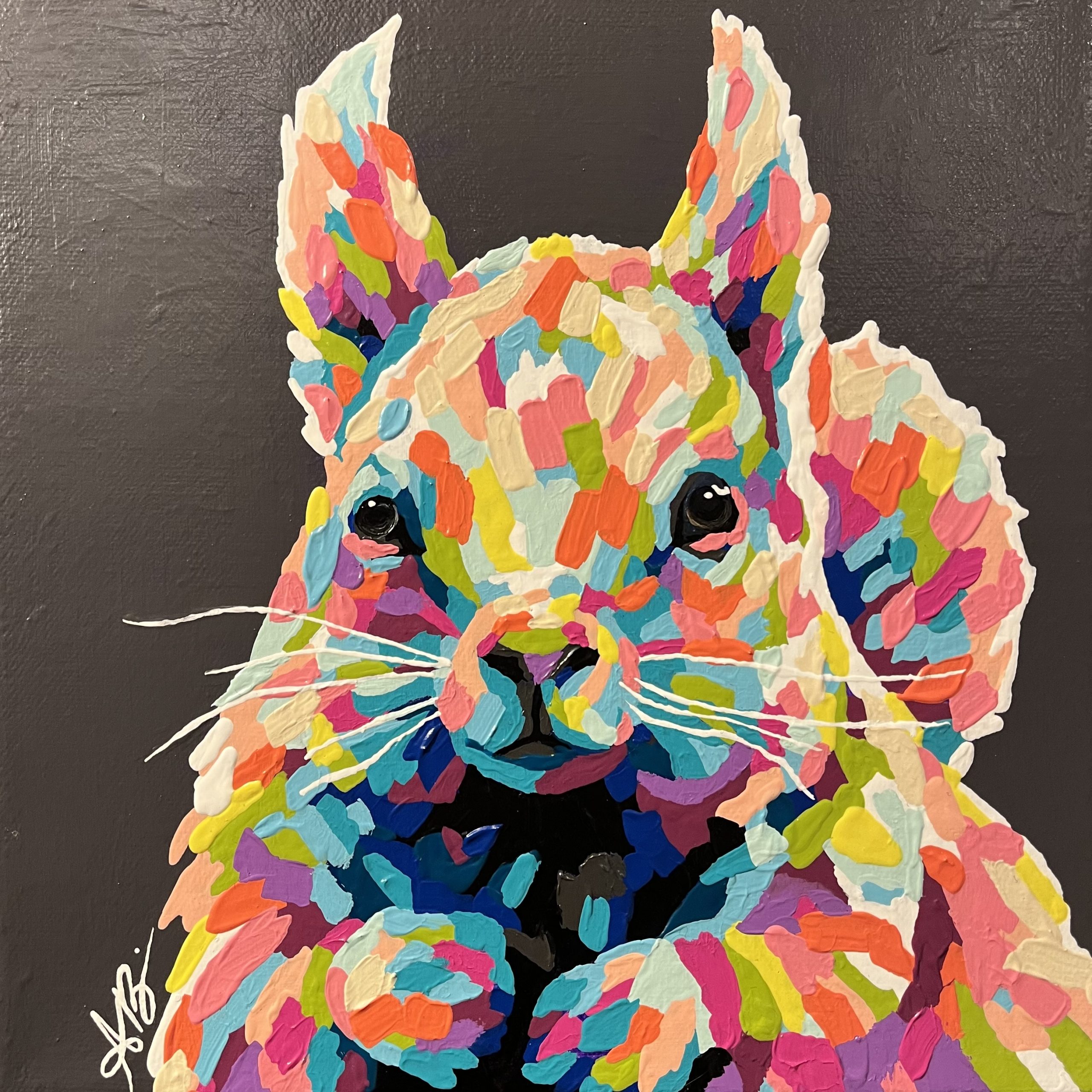 Acrylic paint on a 10”x10” 1.5” deep gallery-wrapped canvas with isolation coat and satin varnish. Comes with wire hanging hardware, ready for your wall. If you’re looking for something a little bigger, Pippa’s big brother, Pip, is available in 12”x16”.