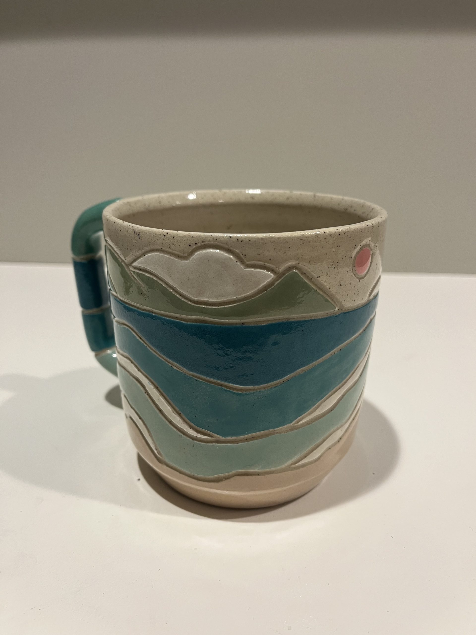 These fun landscape design mugs are perfect for your morning coffee, with large capacities and comfortable handles. They’re hand carved and hand painted. I can custom make to your colour preferences or to replicate a landscape scene that’s meaningful to you.